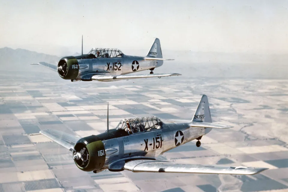 The North American AT-6 Texan was the most widely used advanced trainer of World War II, earning it the nickname "Pilot Maker." Virtually every American military pilot trained in a Texan at some point. With over 15,000 built, it served with air forces around the world and remained in use as a trainer into the 1990s. The Texan's handling characteristics made it an excellent transition aircraft to fighter types.